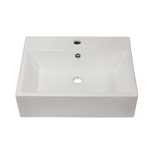 18-4/5''Wx14-1/2''Dx5-1/2''H Bathroom Vessel Sink White Ceramic Rectangular with 1 Faucet Hole