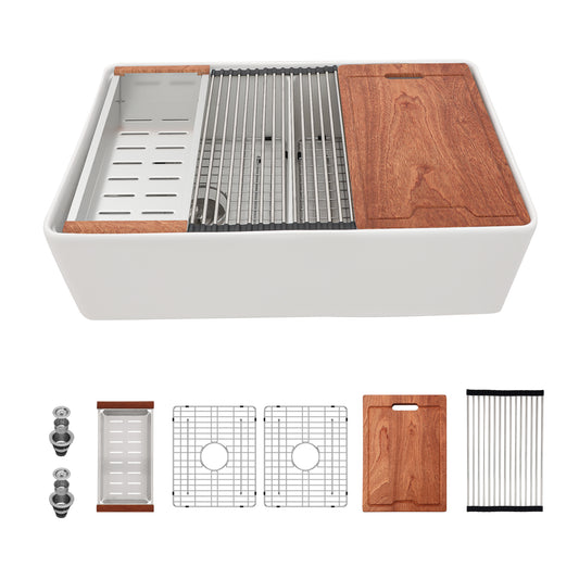 Kichae Workstation Double Bowl Kitchen Sink 33 Inch White Farmhouse Sink