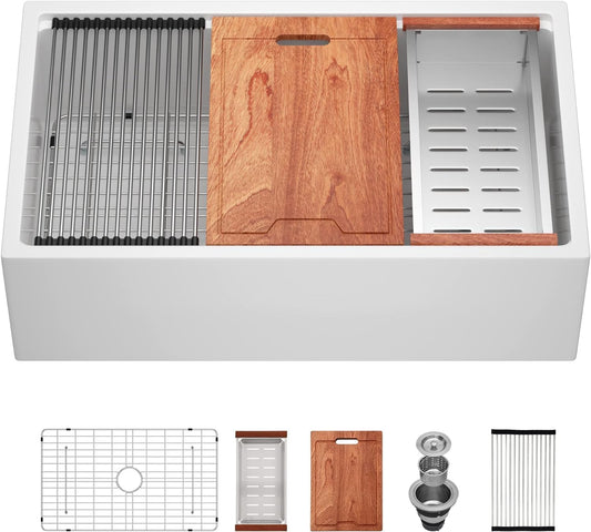Kichae Workstation White Farmhouse Sink 33 inch Farmhouse Kitchen Sink Apron Front White Fireclay Porcelain Ceramic Single Bowl Kitchen Farm Sink