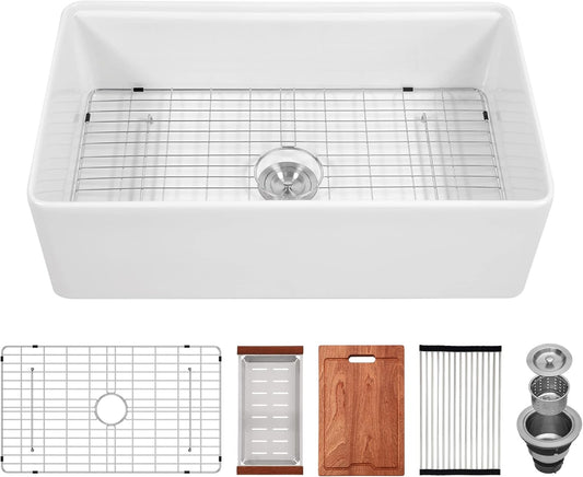 Kichae 33 White Farmhouse Sink Workstation Porcelain Farm Kitchen Sinks Apron Front White Single Bowl Basin 33x20x10 Inch Large Bowl Sink