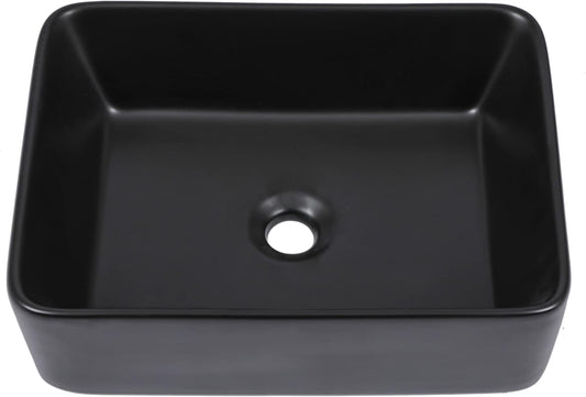 Kichae Vessel Sink Rectangular - 19in x15in Modern Bathroom Rectangle Above Matte Black Porcelain Ceramic Vessel Vanity Sink Art Basin