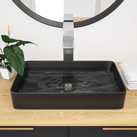 Kichae Vessel Sink Rectangle- 24in x14in Modern Rectangular Top Counter Bathroom Sink Matte Black Porcelain Ceramic Lavatory Sink Bowl Art Basin