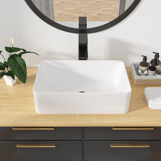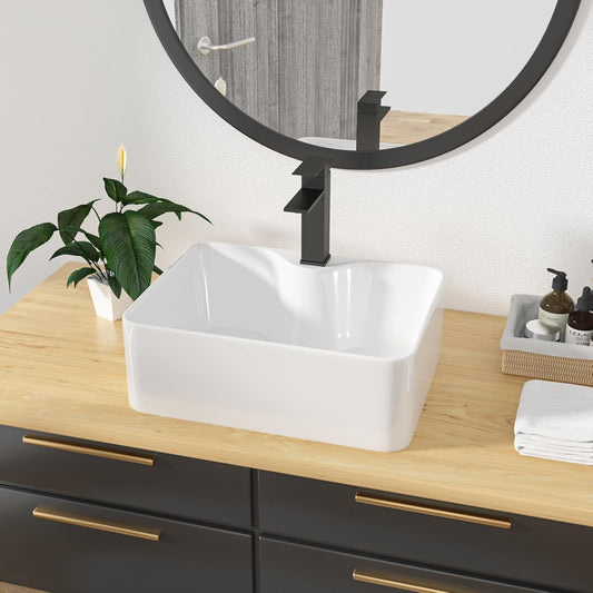 Kichae Vessel Sink Rectangular - 16in x12in Modern White Bathroom Sink Rectangle Above Counter Porcelain Ceramic Vessel Vanity Sink Art Basin