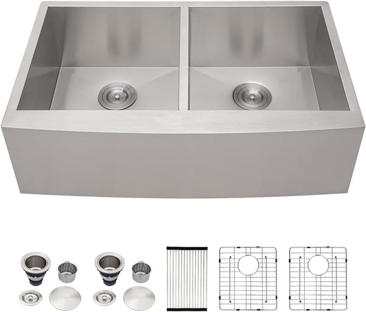 Kichae 36 Double Farmhouse Sink - 36 Inch Kitchen Sink Double Bowl 60/40 Stainless Steel Apron Front Farm Kitchen Sink Farmer Sink