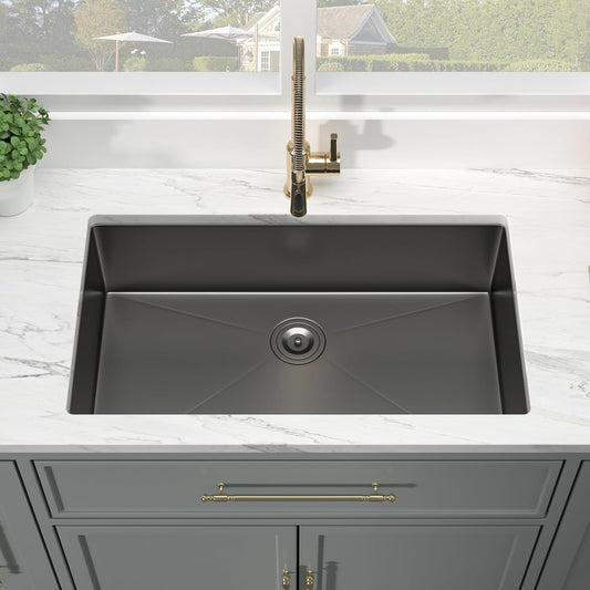 Kichae 30 Black Undermount Kitchen Sink - 30 inch Undermount Sink 18 Gauge Gunmetal Black Stainless Steel Deep Handmade Single Bowl Sink Basin