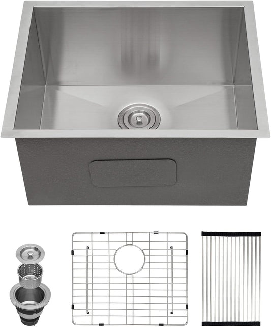 Kichae Drop In Laundry Sink - 22x22x12 Kitchen Sink Drop In 12 Inch Deep Sink T304 Stainless Steel Topmount Handmade Single Bowl RV Laundry Sink with Accessories
