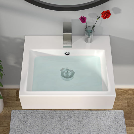 Kichae Wall Mount Vessel Sink - 21in x 16in Rectangle Wall Mounted Bathroom Sink White Wall Hung Porcelain Sink With Overflow Ceramic Basin Floating Lavatory Sink