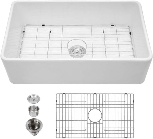 Kichae 32 Inch White Undermount Sink Fireclay 32x19 Inch White Kitchen Sink Dual Drop in & Undermount Kitchen Sink Single Bowl Deep Porcelain Ceramic Sink