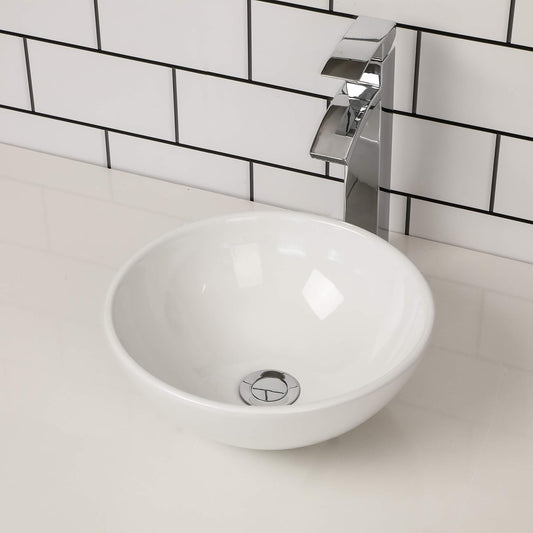 Kichae Round Bathroom Vessel Sink - 13x13 Modern Round Above Counter White Porcelain Ceramic Vessel Vanity Sink Art Basin