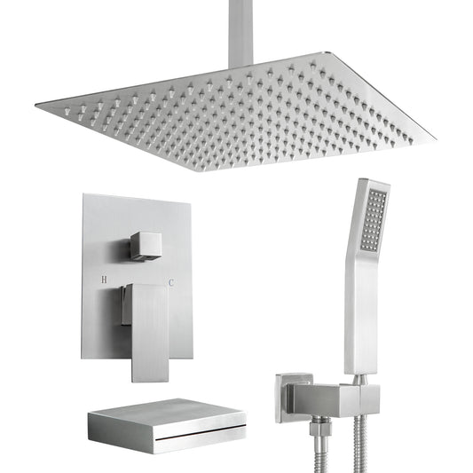 16 Inch Rainfall Square Shower System with Handheld Shower and Waterfall Faucet Ceiling Mounted