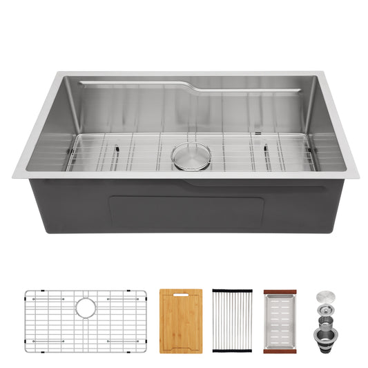 30'' W x 18'' D Undermount Kitchen Sink Workstation Sink Single Bowl Stainless Steel