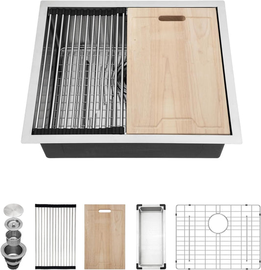 23'' W x 18'' D Undermount Kitchen Sink Workstation Sink Single Bowl with Cutting Board