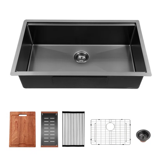28'' W x 18'' D Undermount Kitchen Sink Worksation Sink Gunmetal Black Single Bowl Stainless Steel