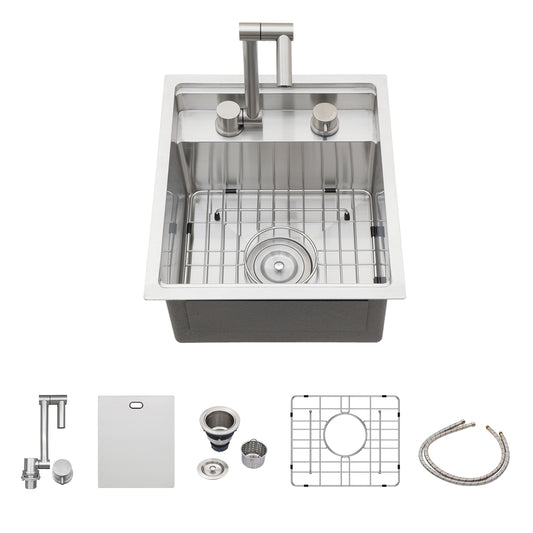 15x17 Inch Undermount Kitchen Sink Single Bowl Workstation Sink Stainless Steel Sink with Faucet