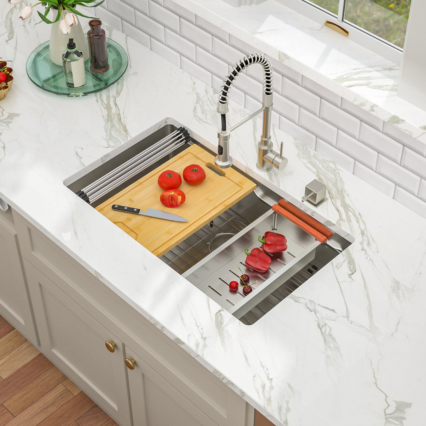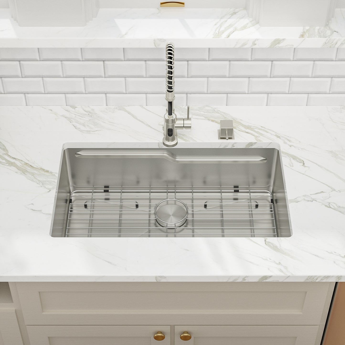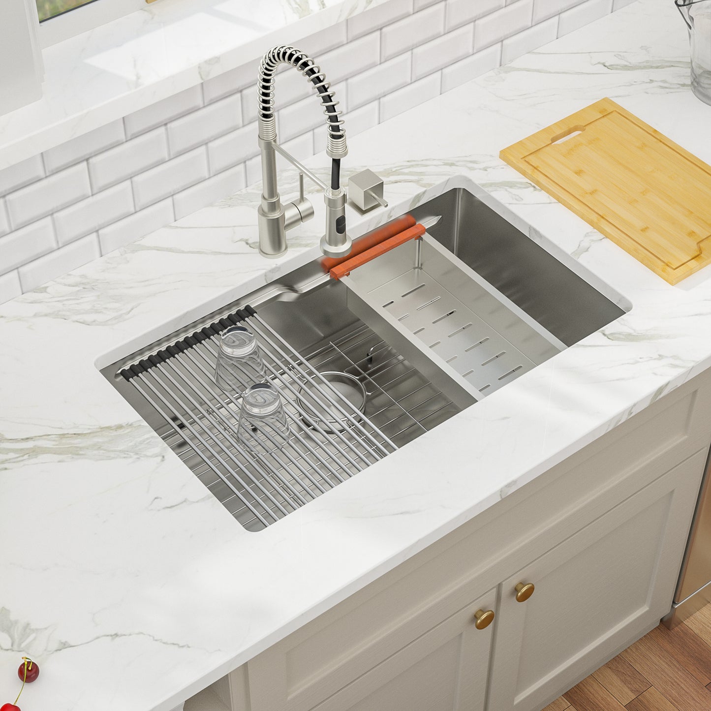 33 Inch Undermount Kitchen Sink 16 Gauge Stainless Steel Kitchen Sink Single Bowl Kitchen Sink Workstation Sink with Z-Shape Single-Tier Track