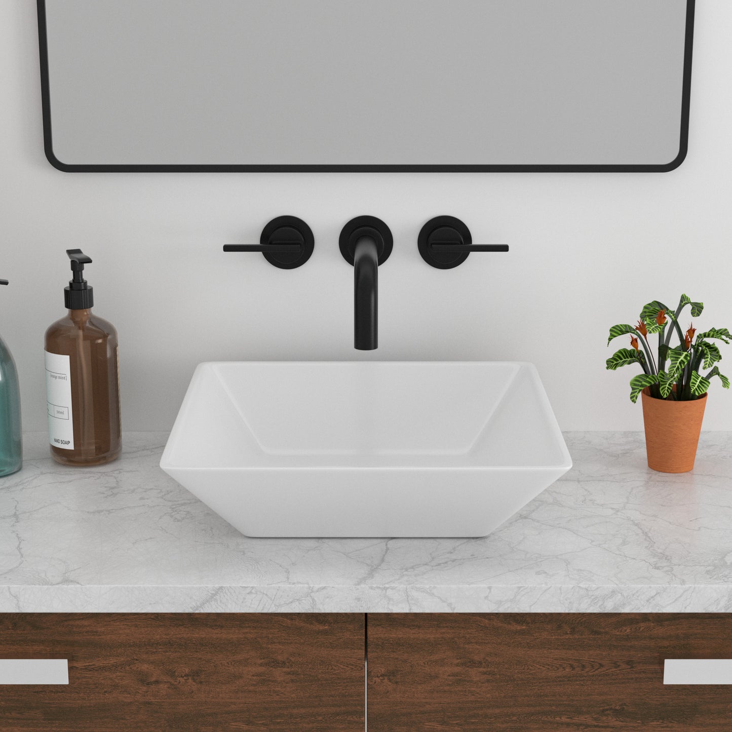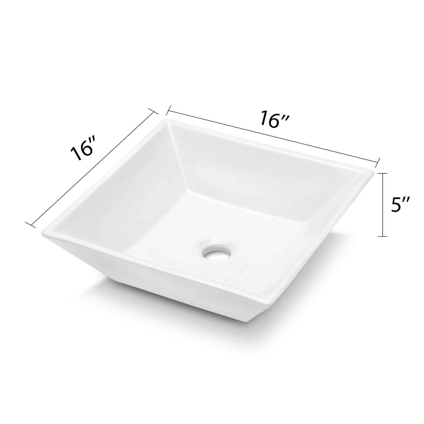 Bathroom Vessel Sink Square - Kichae 16 Inch Modern Square Above Counter White Porcelain Ceramic Bathroom Vessel Vanity Sink Art Basin