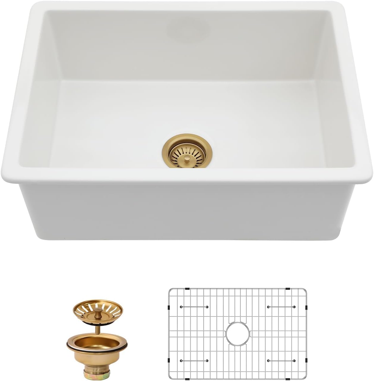 - Spacious Single Bowl White Kitchen Sink: Deep single bowl sink with round corners and center drain creates an uninterrupted workspace for washing your largest cookware, like stock pots and baking sheets. –Undermount Kitchen sink creates a seamless transition from sink to countertop – Smart design adds valuable counter space by allowing you to work right over the sink, perfect for a kitchen of any size.