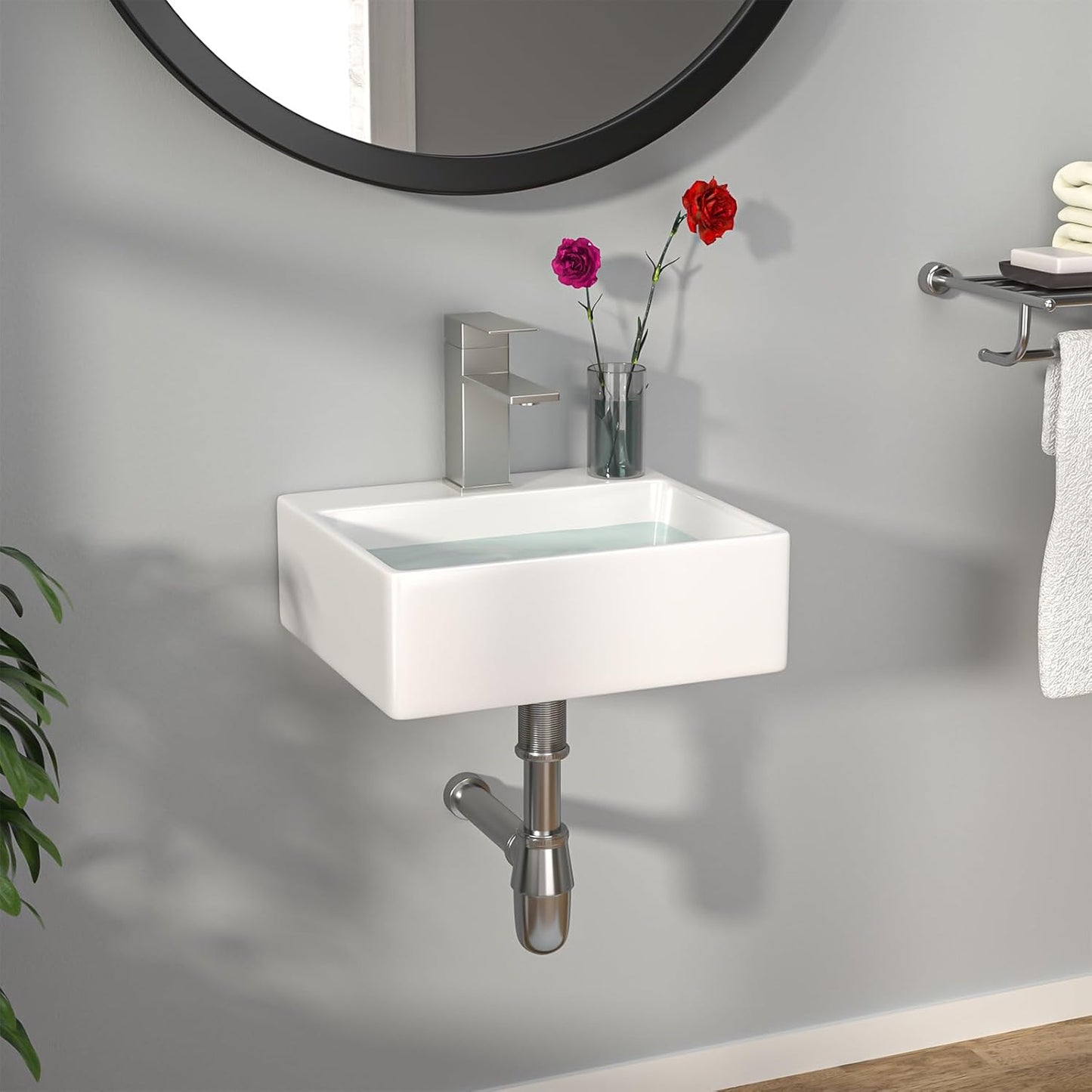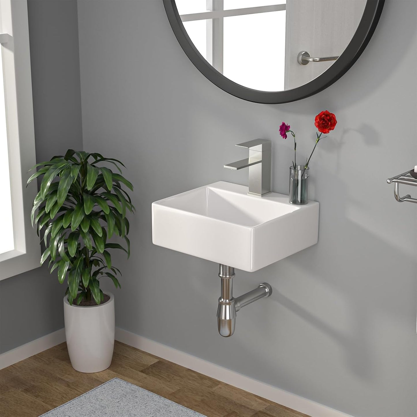 Durable ConstructionMade from high-quality ceramic, this wall-mounted bathroom sink is strong and durable, able to resist scratches, chips, and fading over time. |