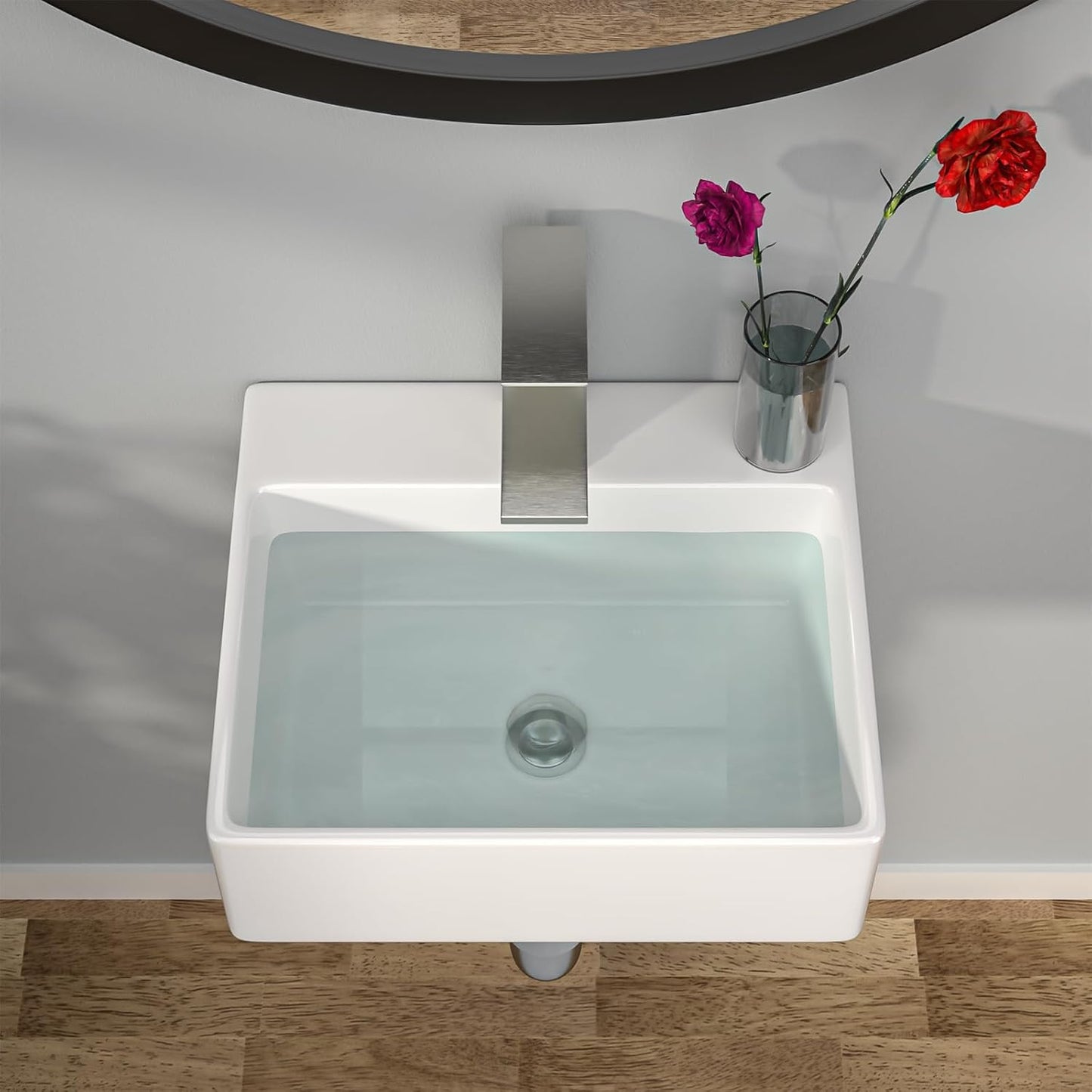 - Easy to install : rectangular wall mounted bathroom sink, the installation accessories are included, allows you install your wall hung sink on receiving it.