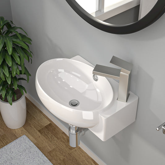 Kichae 16 x 11 in White Ceramic Modern Wall Hung Bathroom Vessel Sink