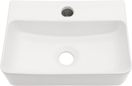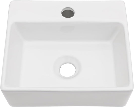 Kichae Wall Mount Hung Small Vessel Sink - Bathroom Corner Floating Sink Rectangle 13in x 11in Modern Bathroom White Porcelain Ceramic Vessel Vanity Sink with Faucet Hole