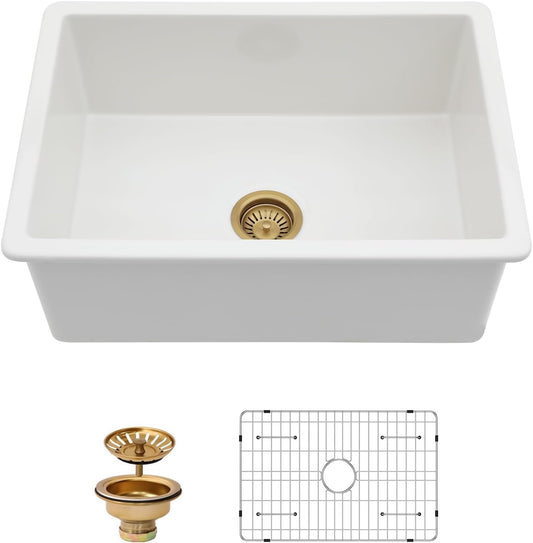 Kichae 27 Inch White Undermount Sink Fireclay 27x19 Inch White Kitchen Sink Dual Drop in & Undermount Kitchen Sink Single Bowl Deep Porcelain Ceramic Sink
