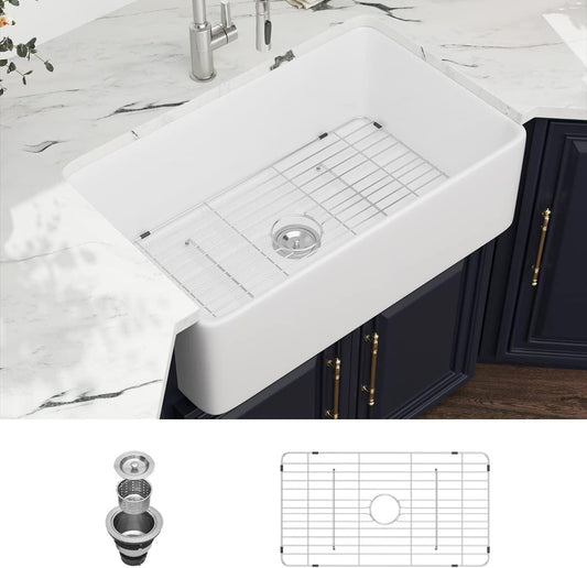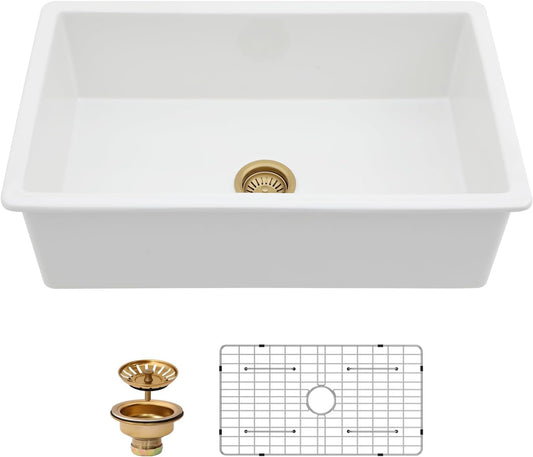 Kichae 32 Inch White Undermount Sink Fireclay 32x19 Inch White Kitchen Sink Dual Drop in & Undermount Kitchen Sink Single Bowl Deep Porcelain Ceramic Sink