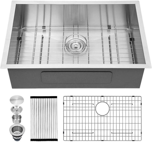Kichae 27 Inch Kitchen Sink Undermount 27X18 Inch Kitchen Sink Stainless Steel Deep Single Bowl Round Corner 18 Gauge Undermount Kitchen Sink Handmade Basin